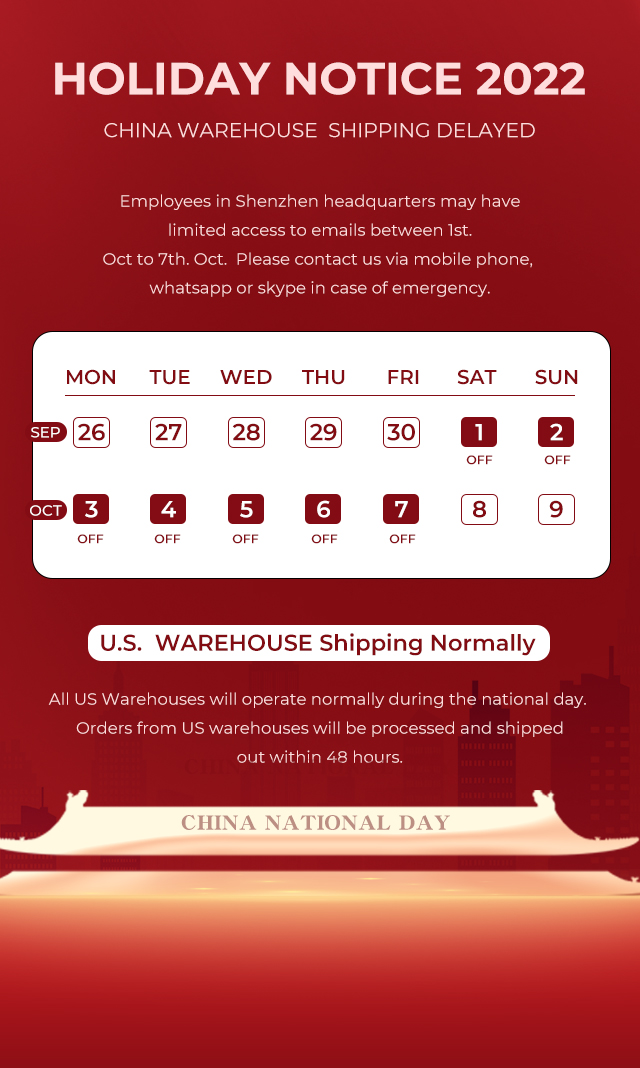 HOLIDAY NOTICE 2022 | CHINA NATIONAL HOLIDAY | 1ST. OCT To 7Th. OCT