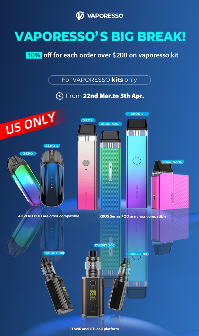 10% OFF For Each Order Over $200 on Vaporesso KITS | 22st Mar to 5th Apr