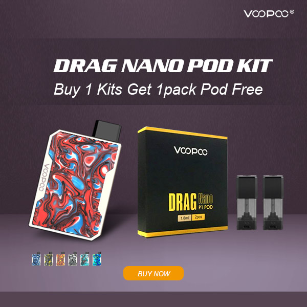 Drag Nano Pod Kit have a good news, give you a brand new experience, if you are the first time to buy the kit, you will get a VOOPOO Drag Nano P1 Pod free ,if you go to second purchase of this product, you will get more gifts . Click to buy and remarks "VOOPOO Drag Nano P1 Pod Free" or contact your exclusive sales person to help you get a gift. Come and contact us!