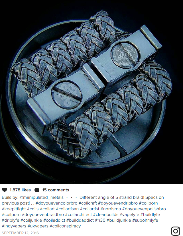Not long ago, a website held a contend in which people showed the coils they made, after which other vapers will show their preferences towards the coils. Much like cloud chasing, vape porn is an extreme subculture to come out of vaping in the last few years. Coil porn has raised the bar, making people aware of such coil builds as the clapton, the fused clapton and the alien for example. In fact, the clapton has almost become a standard.