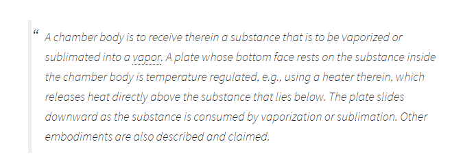 Baran Dilaver, an executive from Firefly Vapor — maker of a high-tech dry herb device sometimes called “the iPhone of vaporizers” — seemed excited. “It confirms our vision about innovating in the vaporization space,” he said in a statement. “However, I don’t think that this patent is intended for our segment specifically based on my reading of the application.” Read that last line carefully. Looking at the patent, it’s not at all clear that this technology is intended for a vaping or heat-not-burn product. Despite all the excitement, no one really knows what the patented tech will actually do. Well, maybe no one knows.