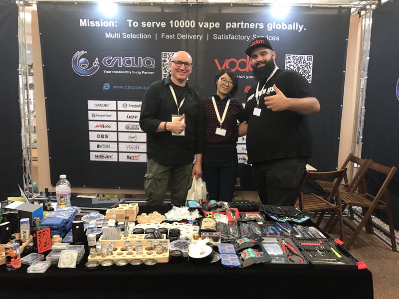 Among the 70 exhibitors, Vpdam is only company with the capacity of a complete range of vaping accessories, from wires and cotton to battery cases and tool bags, and Cacuq is one of the few distributors capable of delivering authentic products of a full selection of premium brands and making good their promise of reliable global delivery. In addition, Cacuq being a strategic partner and the sole distributor of Vpdam, enjoys exclusive privileges of establishing the most advisable and satisfactory matches between vaping devices and accessories.