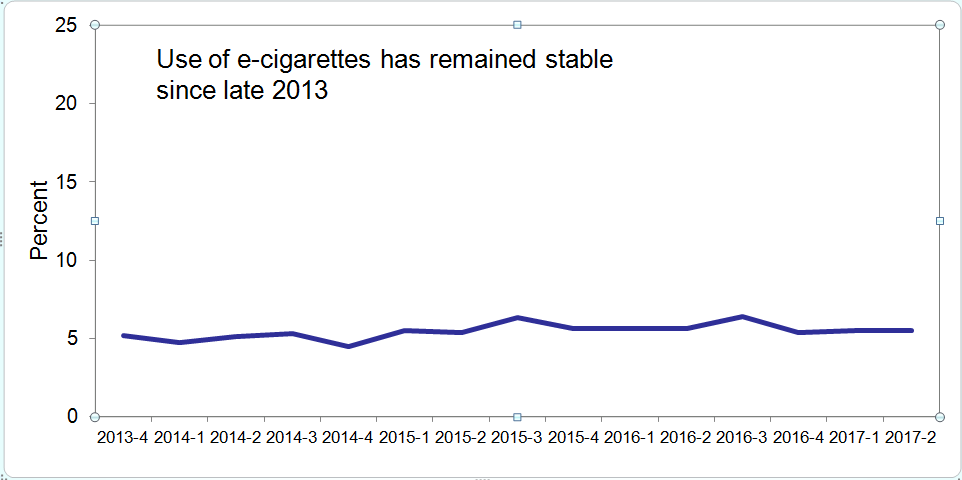 As we can read from the graph, the use of Electronic Cigarettes among the whole population has remained stable since late 2013.