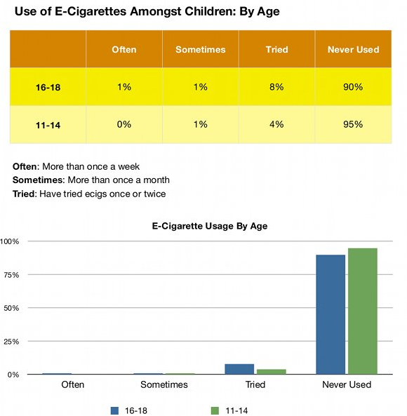 Fortunately, e-cigarette usage has been carefully measured by Action on Smoking and Health (ASH) UK.