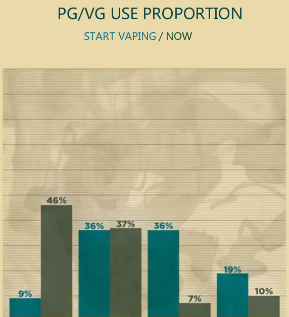 It is interesting to figure out that those choosing the steady proportion of PG/VG almost take the same proportion while for newbies, they prefer high PG proportion and for the old one, they prefer high proportion of VG.