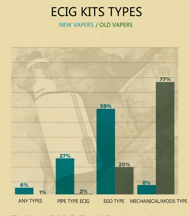 The result shows accordance with the actual fact because as for the novice, they know little about the ecigs and in the reason of convenience, they often choose the AIO such as EGO or the pen-like ecigs, just in the seeking of cigarette substitute . As for the predecessors, they gradually get touch of DIY and became vapor or sapor pursuer, thus , they prefer to choose mechanical or DIY.