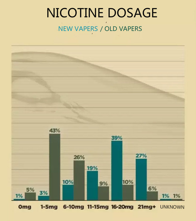There are about 85% of the novice choose the e-juice containing nicotine above 10 mg and for a time, 74% of them will choose the nicotine-contained under 10 mg. At fist they prefer the e-juice having nicotine as high as possible while as for vaping, 6 mg is enough.
