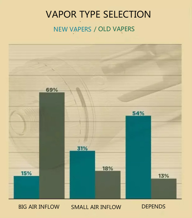 Many new vapers are unsure for the choice of airflow because they don’t know the relevant sapor and vapor, but the old generation often choose big air inflow.