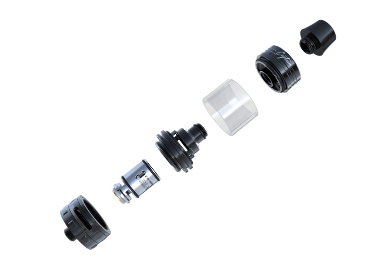 Equipped with the Captain Mini Tank, which features a threadless coil design, groove chassis which helps to reduce heat transmission, and sliding top filling, the Capo 100 Kit brings you exceptional airflow smoothness and outstanding vapor flavor. Both 3.2ml Standard Edition and 2ml TPD Edition are available. The Delrin Widebore Drip Tip gives you extraordinary in-mouth feel and enhances every puff you draw.