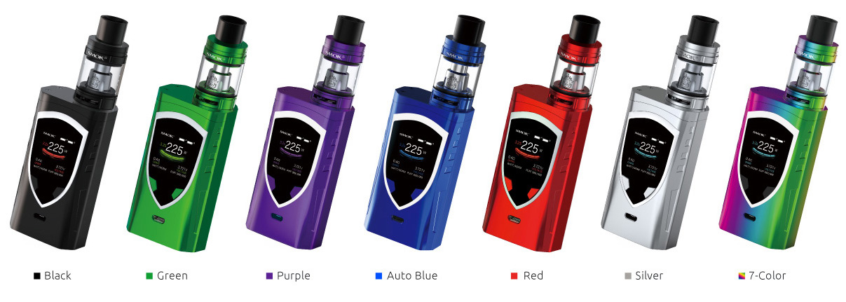 The ProColor Kit comes with the ProColor 225W Mod which upon hitting the market, created a shockwave of universal recognition and applause by its exquisite design, impressive new features, and excellent performance. Seven colors are available, including black, green, purple, auto blue, red, silver, and rainbow.