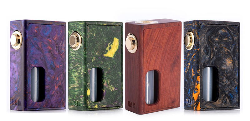 The Ram Box Mod by Stentorian and Wotofo is one of the first affordable squonking (Bottomfeeder) mods on the market. It adopts Noble Padauk material for mod body in elegant wood design. The Ram Box Mod features an ergonomically constructed fire button with safe lock to prevent accidental discharge as well as specially treated 510 adapter to prevent overheating. Four colors are available, including: purple, green, padauk, and black.