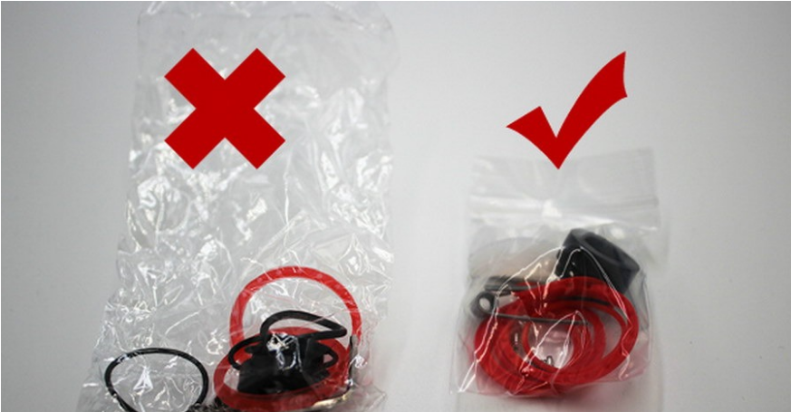 Left side:the bag of the accessaries take the normally seen plastic bag and the silicone rings are not complete, besides, there is a hexangular screw driver in the box, which is unnecessary for the product.
