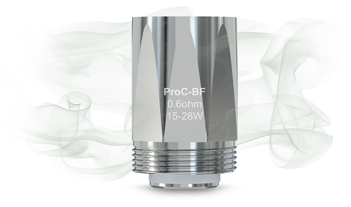 Included in the kit is a ProC-BF series head (0.6ohm) which is widely appraised for its supreme performance and excellent design. Designed for Mouth-to-Lung vapers, the head delivers soft and dense flavors. The head is also compatible with CUBIS series/eGo AIO series/eVic AIO/Elitar Pipe.