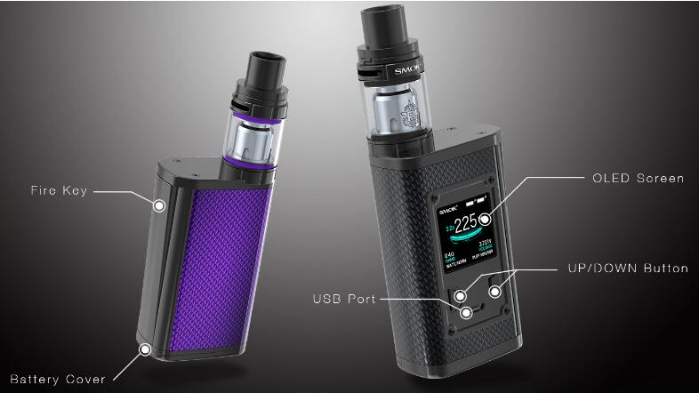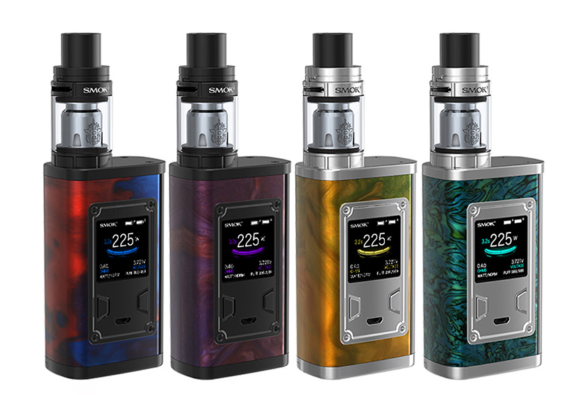 Powered by dual 18650 batteries, the SMOK Majesty Kit is a classic design that delivers a maximum output power of 225W. Constructed from carbon fiber, the Majesty Mod is crafted to be solid, strong, and corrosion resistant. The Majesty Mod incorporates elements of ergonomics to pursue maximal comfort and user-friendliness. Its super large OLED screen displays every important parameter in their proper positions effectively and with clarity. Combined with the universally applauded 4ml/2ml TFV8 X-Baby Tank, The Majesty is not in the danger of empty boasting when it is said of it that even the most fussy vapers would be duly satisfied. 8 colors are available, including carbon fiber black, carbon fiber purple, carbon fiber red, carbon fiber blue, purple resin, yellow resin, green resin, and blue resin.