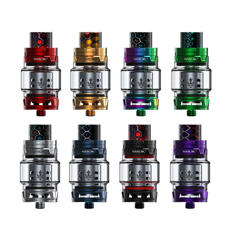 The SMOK TFV12 Prince Tank is, if nothing else, at least a Tank worthy of its name, unlike so many other of its comrades that holds magnificent titles but are often without deserving appearances and features. The crown logo graven on the front side of the atomizer core, together with its majestically styled yet austere frame, constitutes a substantial dignity fit to be called Royal Prince. 8 colors are available, including black, red, 7-color, purple, green, gold, stainless steel, and blue.