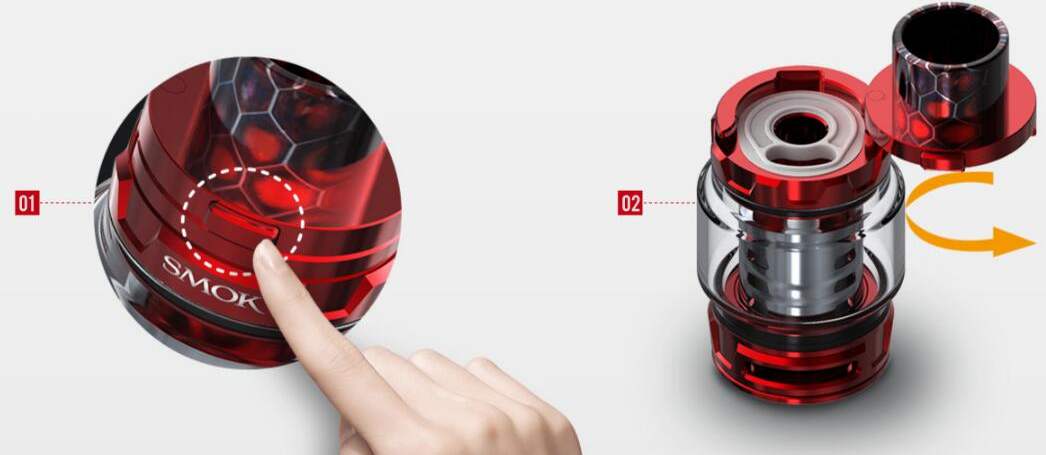 Measuring 2ml in capacity, the TFV 12 Prince tank is complaint to the EU TPD standard, and yet with the aid of a convex glass tube, its capacity is effectively expanded to an 8ml. Its original top cap is equipped with a patented locking mechanism, which secures the cap and by pressing which the cap is opened, thereby effectively avoiding accidental leakage.
