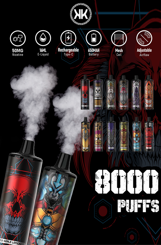 NEW | BIG PUFFS | KK Rechargeable Disposable 8000puffs Pod Kit 650mAh 16ml