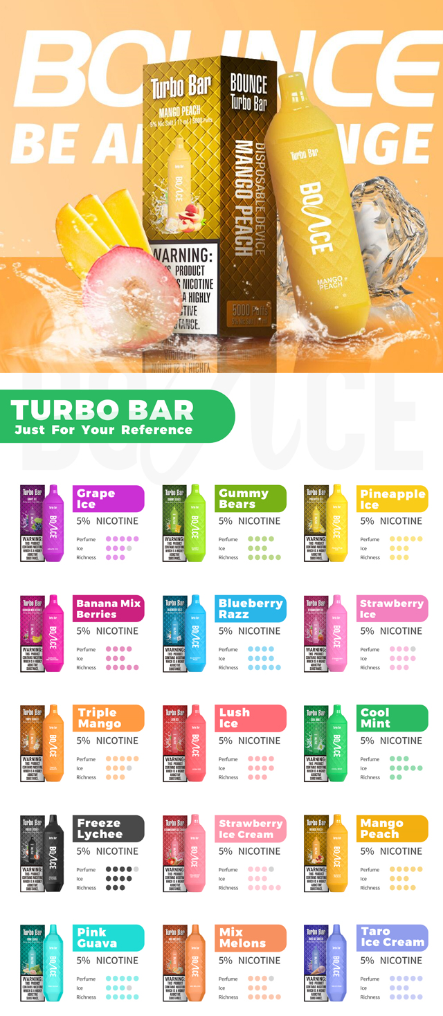 NEW | Bounce Turbo Bar 5000Puffs Rechargeable Disposable Pod Kit 650mAh 11ml |