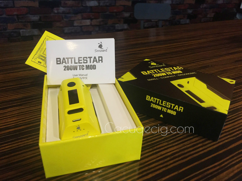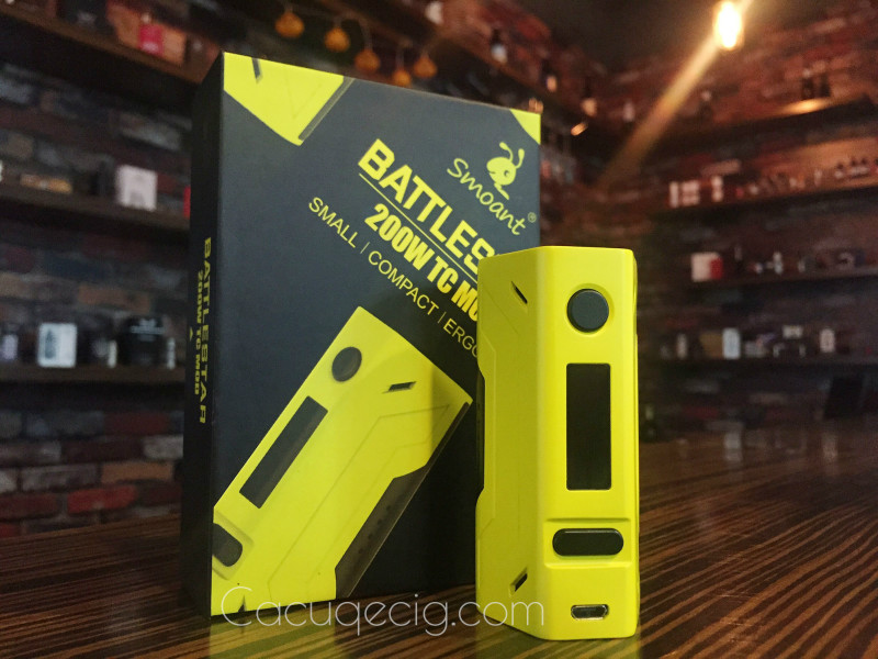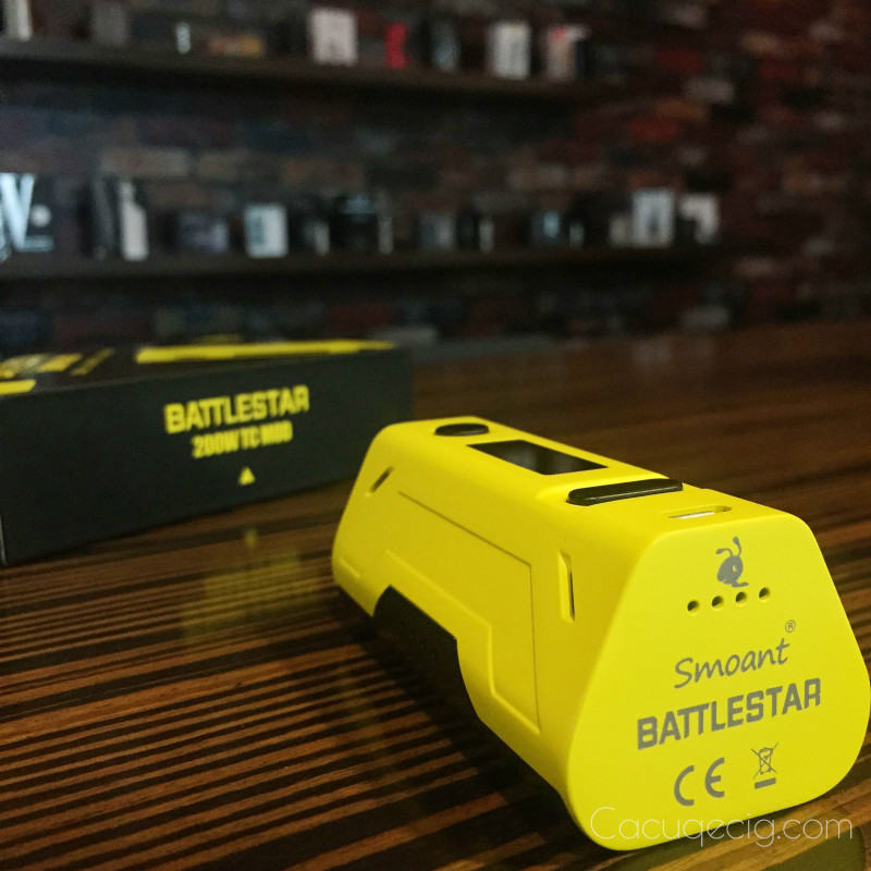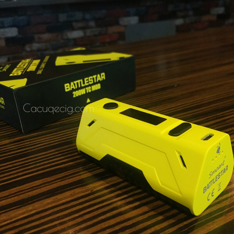 Is it just me, or does this one look strangely familiar?The Smoant Battlestar clearly appears to have been inspired by the Reuleaux RX2/3 (in 2-battery mode). That’s not necessarily a bad thing though. Since this one was designed exclusively for 2 batteries, it actually does offer some advantages. It’s lighter and shorter than the RX2/3, and it even has a standard magnetic battery door.The Battlestar is a brand new box mod from Smoant and features true 200 watts of power, a small form factor, two battery operation and is said to fire without delay. It is available in black, yellow and white.