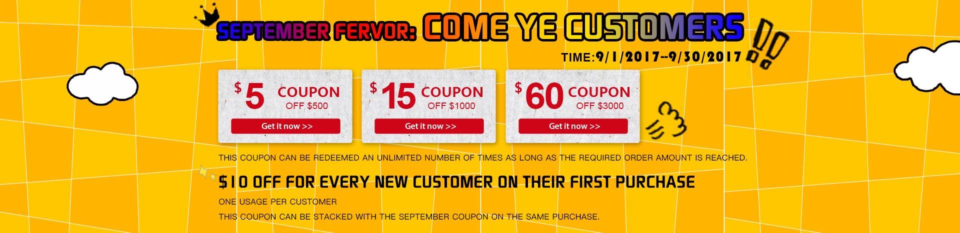 Dear customers, a new wave of promotion is coming in September with coupons of unlimited usage and astounding benefits for new customers! Come and check it out!
