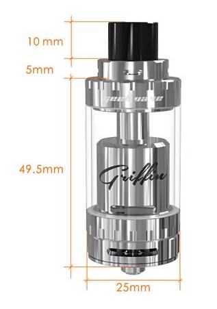 It features with a Kennedy style bottom airflow,with a big 18.9mm velocity build deck,easy to fill the e-juice ,and Griffin 25 Plus tank capacity is 5ml .it is more bigger than Griffin 25 min version 3ml .using RDTA juice flow channel and Convenient wicking exactly same as RDA.Catch to carry Griffin 25 Plus in hand ! The GeekVape Griffin 25 Plus Tank is one of the latest atomizers coming from GeekVape. This tank is constructed of stainless steel and silica glass. Even though it looks very similar to the original Griffin 25, it is very different.