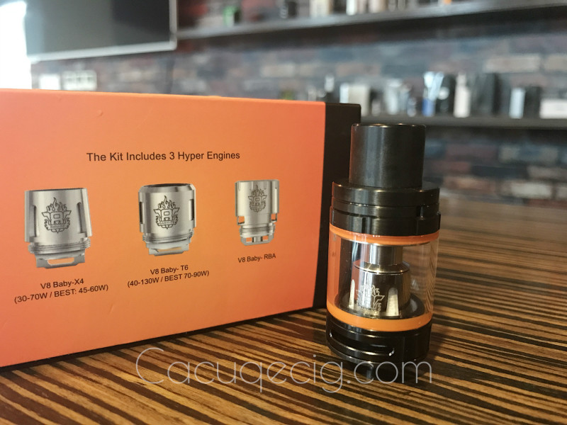 TFV8 Baby is the smaller version of the popular TFV8. It's smaller yet still powerful due to its new turbo engines. It also features an innovative airflow system and re-designed airslots and air chamber.TFV8 Baby, which size is 1/3 smaller than the Cloud Beast - TFV8, adopts new Turbo engines: V8 Baby-Q2 Dual Core, V8 Baby-X4 Quad Core, V8 Baby RBA and more is coming. Meanwhile, its airflow system: the bottom pair air-slots, the air chamber, the drip tip, are re-designed after precise calculations and optimizations. All those efforts ensure that TFV8Baby is another Cloud Beast - a Baby Beast.
