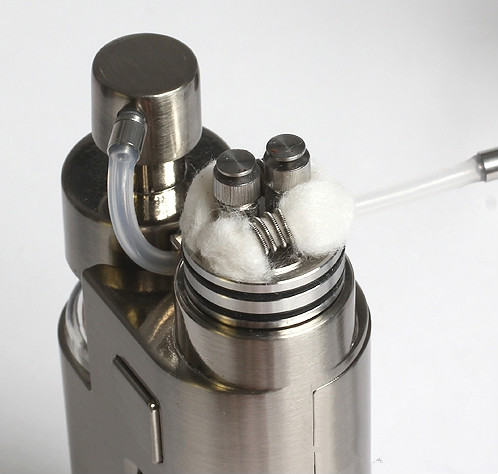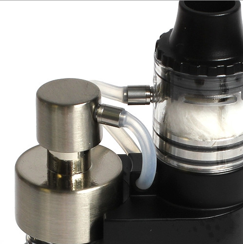 Including the RDA, the entire bundle measures 127mm x 50.8mm and can be purchased in silver or black. Inside the mod section, you will find a 15ml e-juice bottle that is easily refilled, without hassles. But, instead of squeezing the bottle to direct juice to the atomizer, you push down on the brand new pump cap which is located adjacent and directs liquid to the atomizer. This makes wicking your cotton easier than ever. Kangertech is here to introduce a very unique product named the DRIP EZ Kit. The DRIP EZ features a e-liquid pump which is placed on top of the included bottle. A tube connects directly from the pump to the DRIP EZ RBA which allows e-Liquid to be delivered directly into your cotton.