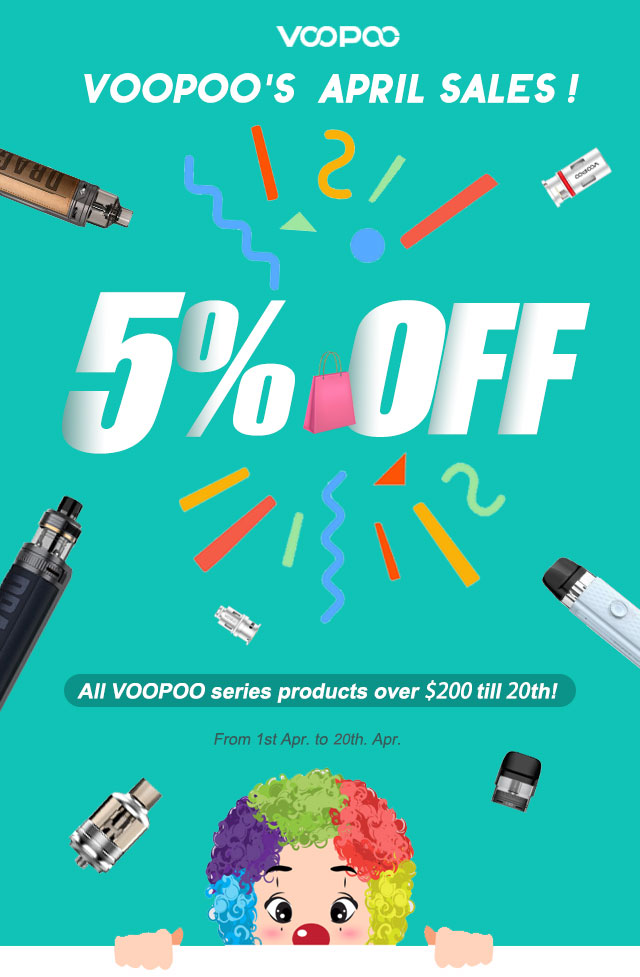 VOOPOO April's Discounts |5% OFF on ALL VOOPOO Stuffs till 20th Apr| US ONLY