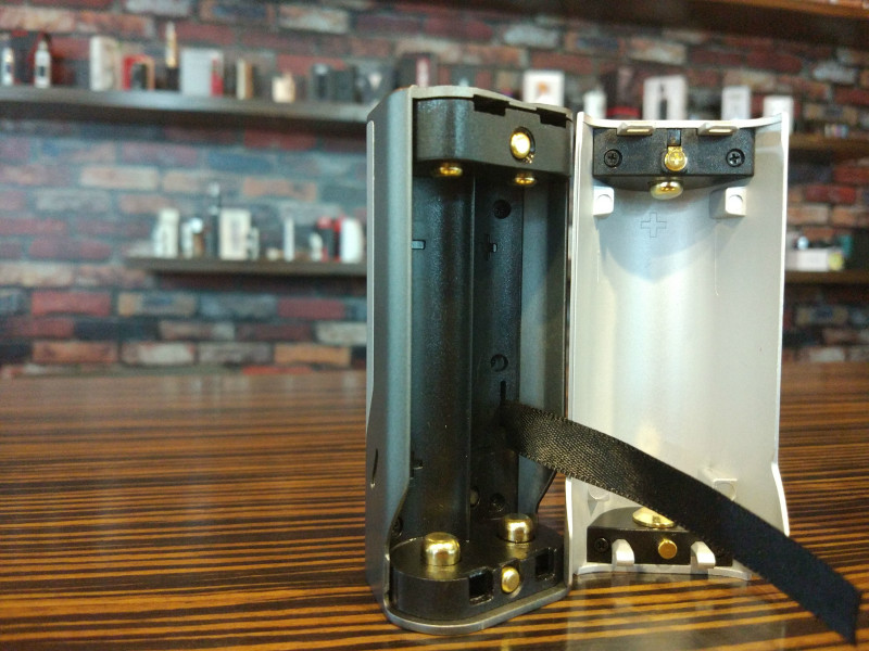 One of only a few changes made to the WISMEC Reuleaux RX2/3 is how the battery door attaches. With the previous iterations, the doors were held on by magnets. By pressing the small square button underneath, it unlocks the bottom of the battery door and simply remove it. At times the release button needed extra force to unlock properly but gets easier with repetition. Install either battery door the same way by inserting the top of the door first, at an angle, which is tricky the first few times. Then push the bottom tabs into place which locks the door securely. The first couple days, I was performing it backwards by pushing the tabs in the bottom first and snapping the top into place; common sense should’ve kicked in. I’m lucky I didn’t break the top hooks off both doors! Keep in mind that when closing either door, you won’t hear a click which I thought was odd and that mine was possibly defective. When releasing the doors, it will click; weird.